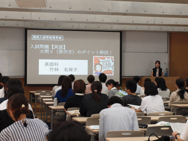 英語と数学の体験授業では、過去の本校入試問題を用い、参加された中学3年生の皆さんといっしょに解きながら解説を行いました。また、実際の入試へ向けたアドバイスもさせていただきました。