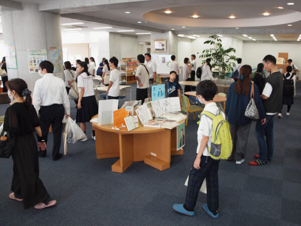 学校案内では、教室や職員室のほか、約5万冊の蔵書を備える図書室や屋上庭園、食堂などの施設を見学、また、希望される方には里山も見学していただきました。