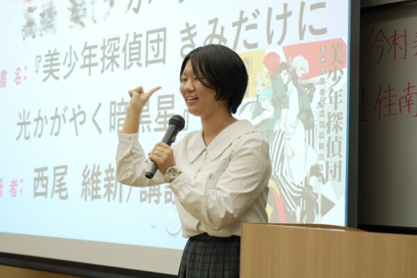 中でも印象的だったのは、本の内容だけでなく「面白いと思ったところ」「おすすめポイント」などを自身の読書体験を交えて語っていた点です。それぞれが自分の言葉で話し、聞いている生徒たちも自然と引き込まれ、思わず「読んでみたい!」という気持ちになりました。