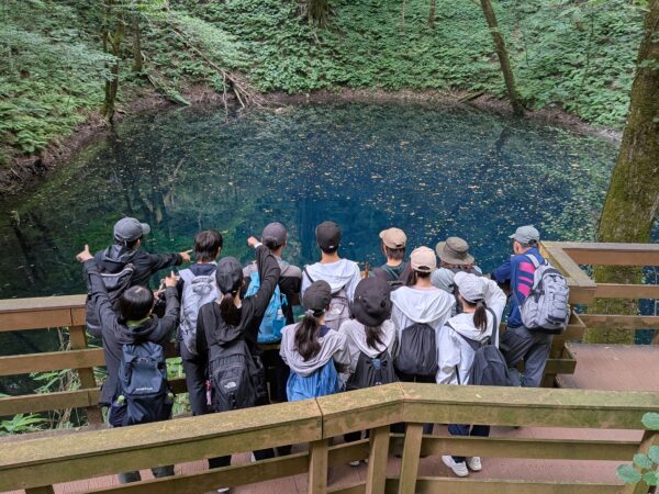 令和7年7月22日(火)~7月25日(金)、秋田市地蔵田遺跡、マタギ資料館、青森県西津軽郡深浦町十二湖・千畳敷・三内丸山遺跡にて、高校2年生11名が参加し、研修を行いました。研修の中心である白神山地の十二湖周辺で現地ガイドの柳町明男先生のご指導の下、2日間の実地研修を行いました。