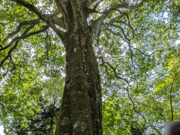 2、3日目は柳町先生の案内で白神山地の実地研修を行いました。ナラ枯れの処置のために切り倒され、ビニールに覆われた木々がたくさんあり、温暖化によるナラ枯れ被害の北上、環境の変化がおこっている現状が最も印象に残りました。また、食用や薬になる植物を教えていただき、大きなブナの木の直径を測定する中で、山の豊かさを実感しました。夜の講話では、柳町先生の生活や生き方に、自然を無駄にせず、再生していく先人の知恵や文化を、そして、ここで生きてきた人でないとわからない多くのことを学びました。