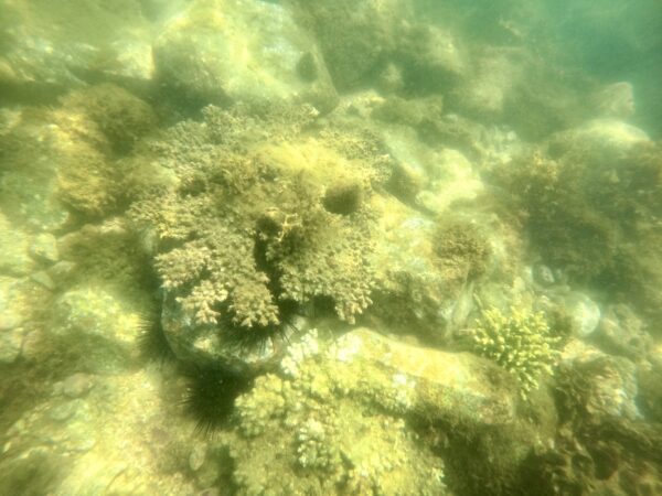 川嶋先生から「北限サンゴ群落の変遷」についてご講義いただき、ガンガゼなどサンゴを食害する生物の影響でサンゴの数が減っていることを知りました。中村先生からは「サンゴの生活史」についてご講義いただきました。サンゴの骨格が炭酸カルシウムで構成されていることや、ポリプのクローンを増やして成長していくことなど、サンゴの生態について学びました。朝倉先生からは「海の環境保全の取組」についてご講義いただき、平沢マリンセンターでは、折れたサンゴを回収して岩に植樹をしたり、サンゴを安全な場所に移動することで、サンゴの保全を行っていることを学びました。