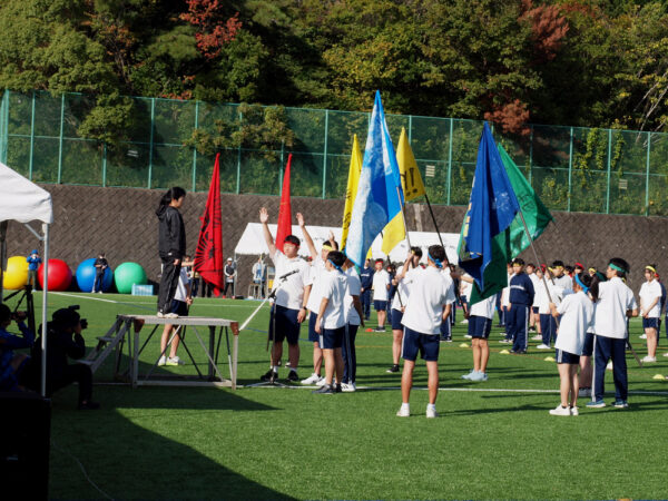 閉会式では成績発表が行われました。赤組796点、黄組629点、緑組650点、青組659点で、今年の総合優勝は赤組が手にしました。赤組団長の生徒が前田校長から優勝カップを手渡されると、生徒たちから健闘を讃える大きな拍手が贈られました。保護者の皆様にとっても、お子様の健やかな成長を実感していただける機会となったのではないかと思います。お越しいただきありがとうございました。