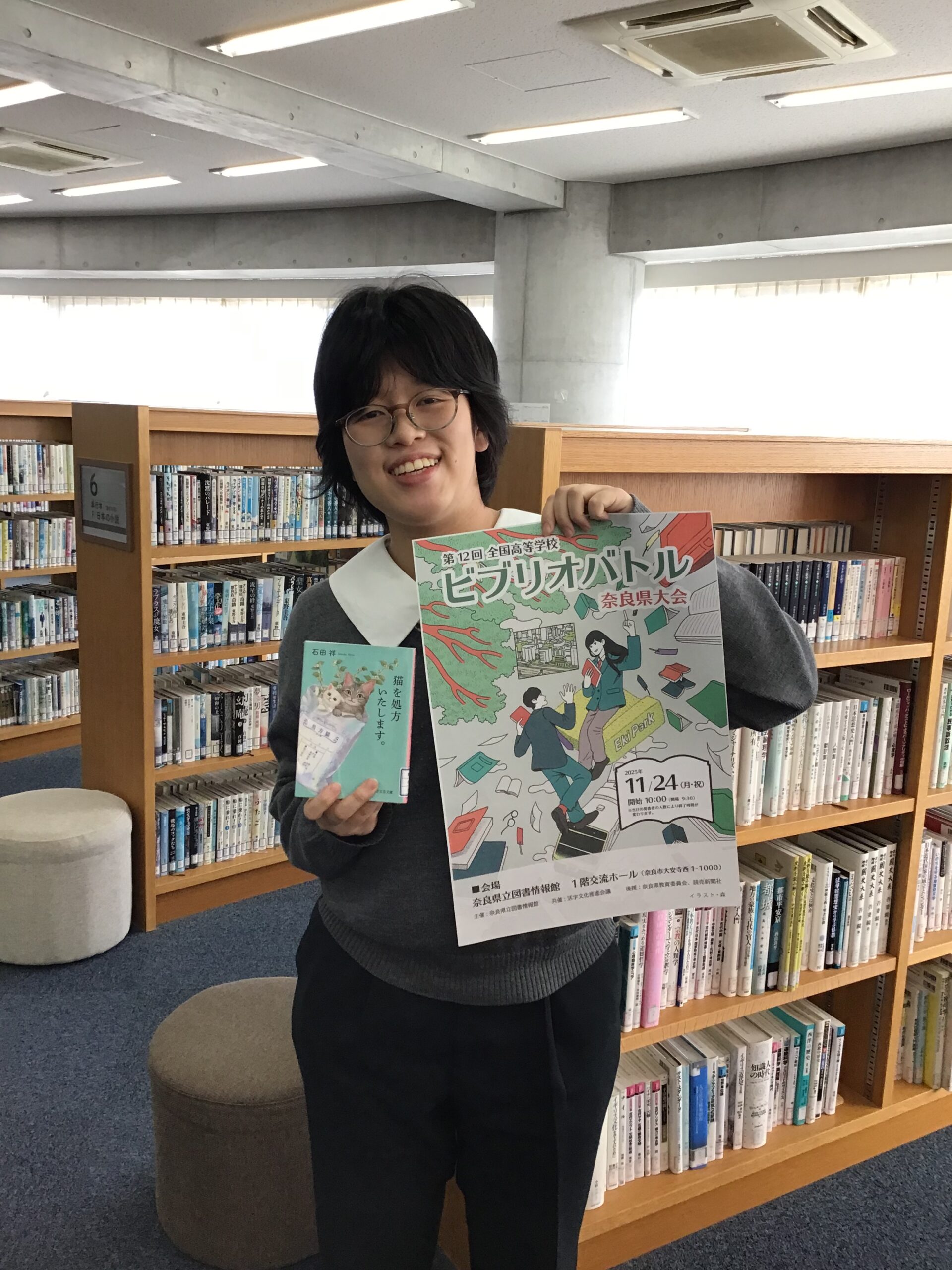 去る11月24日(月)、奈良市の県立図書情報館で「第12回全国高校ビブリオバトル」奈良県大会が開催され、本校の高校Ⅰ年の村上佳南さんが見事優勝しました。村上さんは、2026年2月8日(日)に東京で開催される全国大会に出場します。