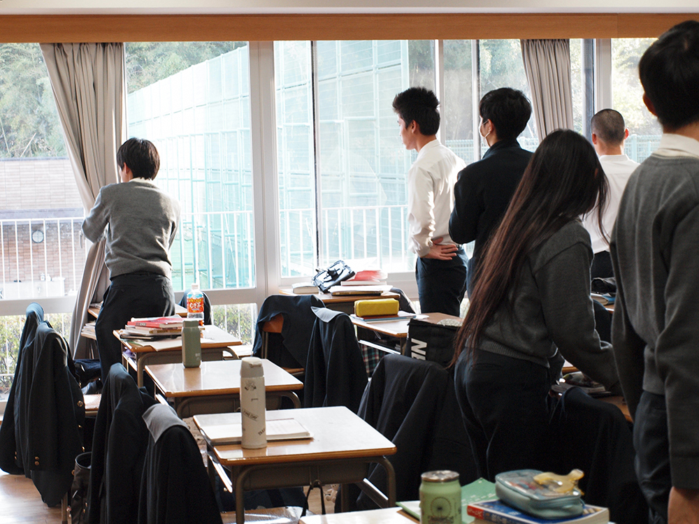 12月2日(火)、本校では全校避難訓練を実施しました。6限目終了直前、非常ベルと緊急一斉放送により、全校生徒へ火災発生が伝えられました。今回は「職員室からの出火」という想定のもと、教員の指示に従って、教室の窓を閉め、カーテンを開け、消灯し、扉を閉めたうえで、事前に周知されている避難経路を使って上履きのまま避難を開始しました。
