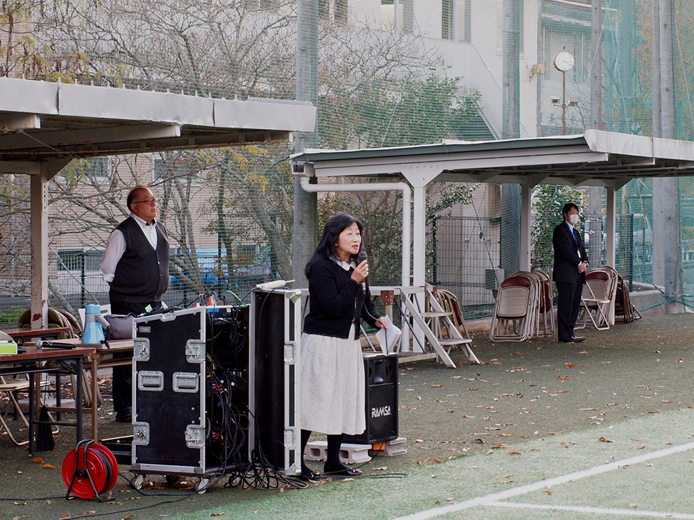 訓練後、前田校長は学校の避難訓練時の標語である「おはしも」について触れ、「避難時には“押さない・走らない・しゃべらない・もどらない”ことが大切です。皆さんは1日の多くを学校で過ごしています。万が一に備えて、普段からこの標語を心に留め、一人ひとりが安全に避難できるよう努めてください」と話しました。