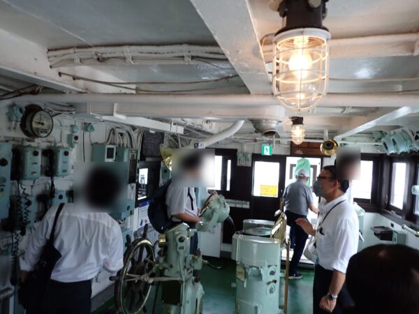 その後、髙橋さんのわかりやすい説明に合わせて船内を見学し、普段見ることができない甲板の一部や操舵室裏の部屋も紹介してもらい、当時の船のようすについて学ぶことができました。
