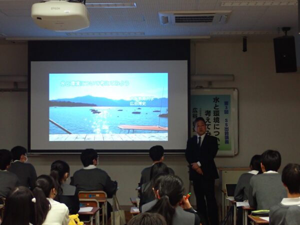11月19日(木)、大阪教育大学の広谷博史先生をお招きして、第三回SS出前講義を開催しました。テーマは「水と環境について考えよう」です。水は、生命の維持に必要であり、私たちの社会生活にもなくてはならないものです。この講義を通して、当たり前だと思っている水について様々な観点から考察しました。